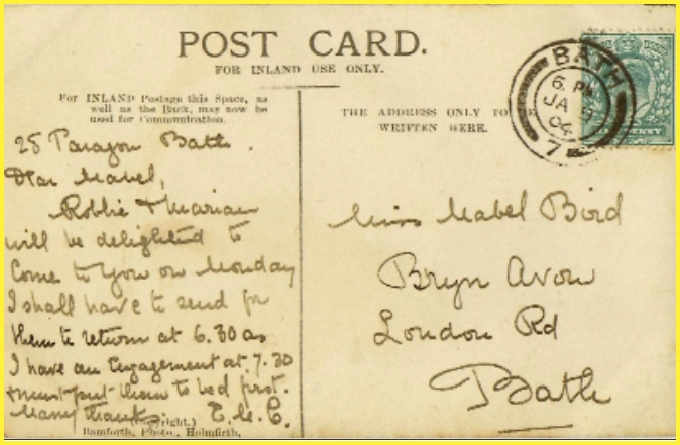 from Mrs Crump to a friend from their Bath days, Mabel Bird, presumably written